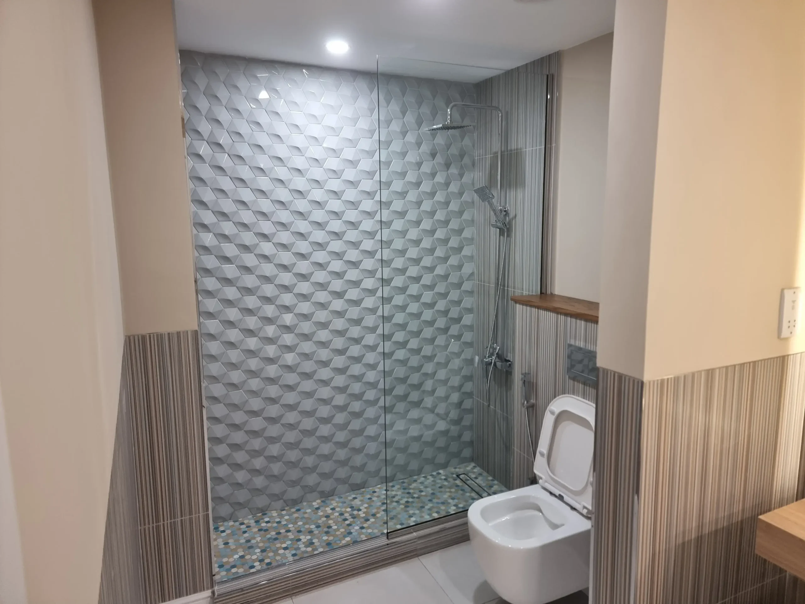 Elegant and easy-to-clean shower glass partitions—crafted for modern bathrooms with durability and style.